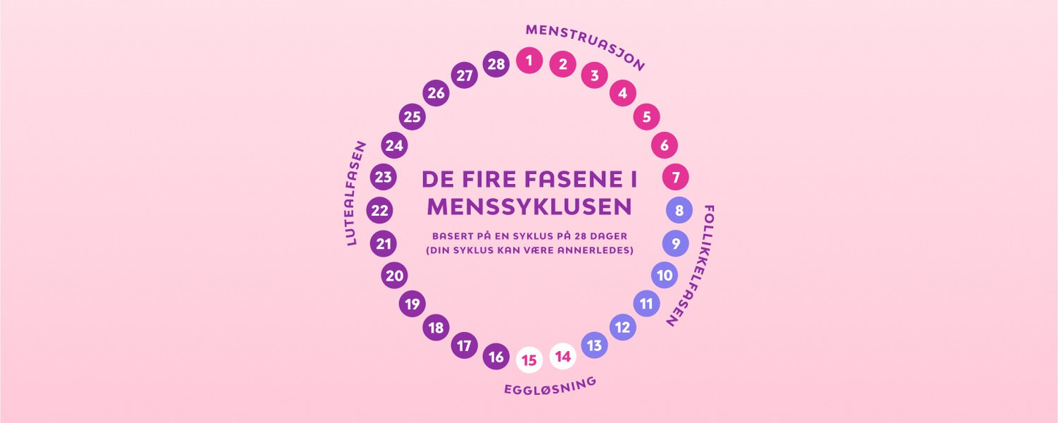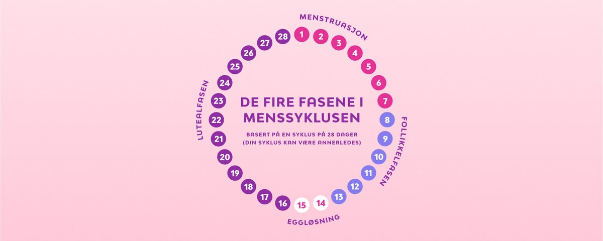 Først og fremst lurer du kanskje på hvor lang en menssyklus pleier å være? For de fleste pleier den å vare mellom 21 og 35 dager, og for mange ligger den på rundt 28 dager. I puberteten kan menssyklusen være enda lengre, og det kan ta opptil et par år før den blir mer regelmessig – hold ut!